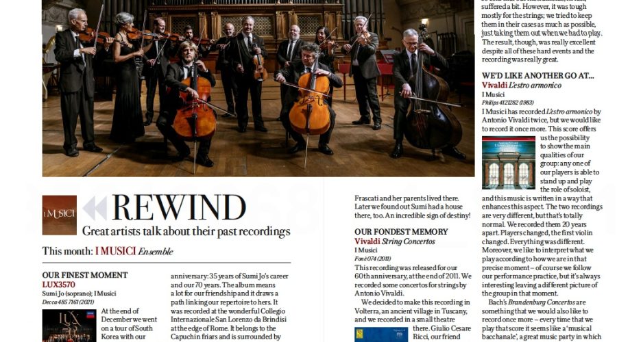 Nell’articolo, I Musici parlano dell’album Antonio Vivaldi, Concerti per archi e continuo definendolo il loro “più caro ricordo”. Per leggere l’articolo cliccate qui.