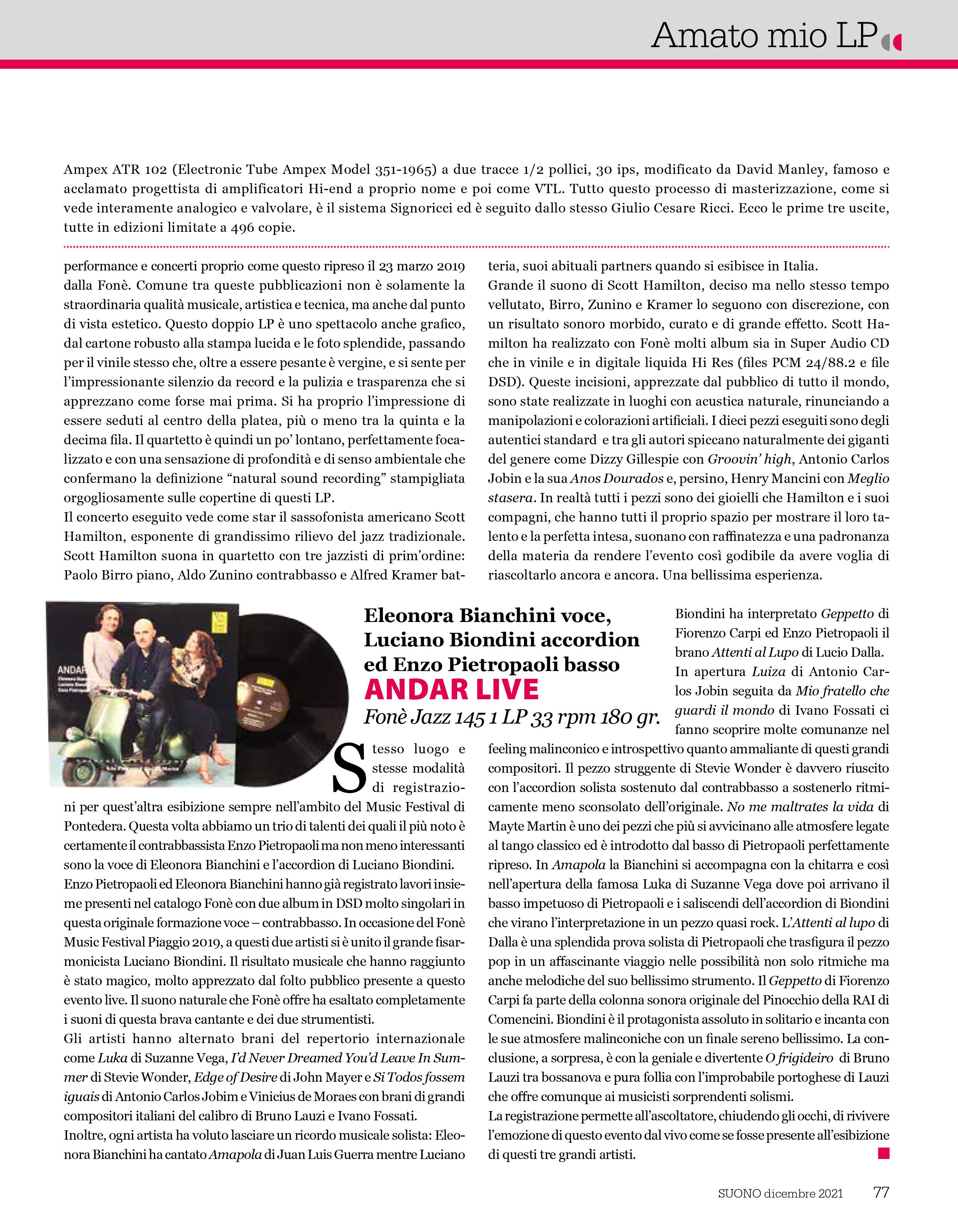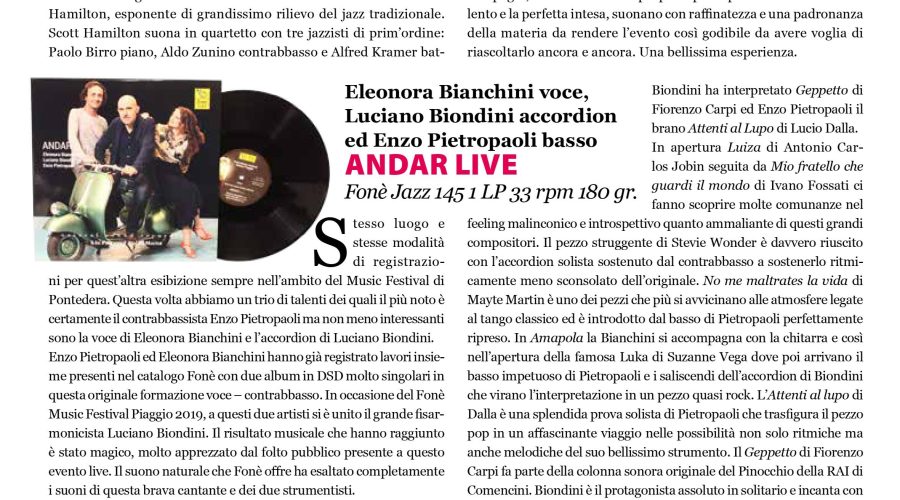 Se non l’avete ancora fatto, vi invitiamo a leggere la bella recensione di ANDAR LIVE pubblicata da SUONO nel numero di dicembre. Vi ricordiamo che l’album è disponibile (anche nella versione SACD) nel nostro shop online.